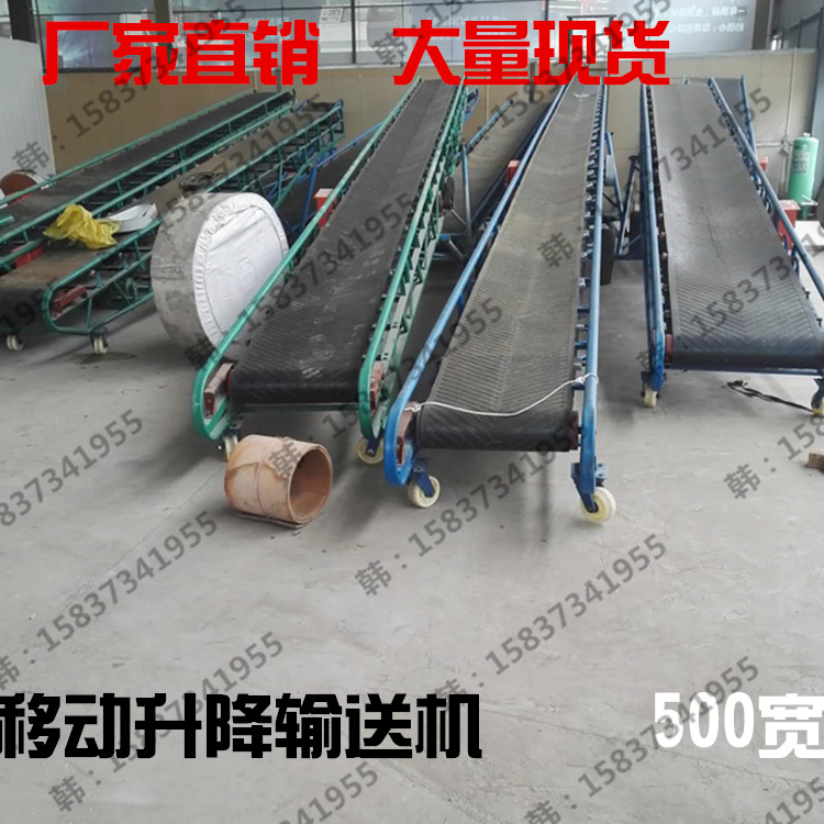 本机配有行走轮,可作整机移动,输送倾角可以根据实际需要调整,1大倾角为22度,变幅机构可以手动调整,也可以采用电动执行;根据输送工艺布置要求,可以单机或多台组成水平或倾斜的输送系统。