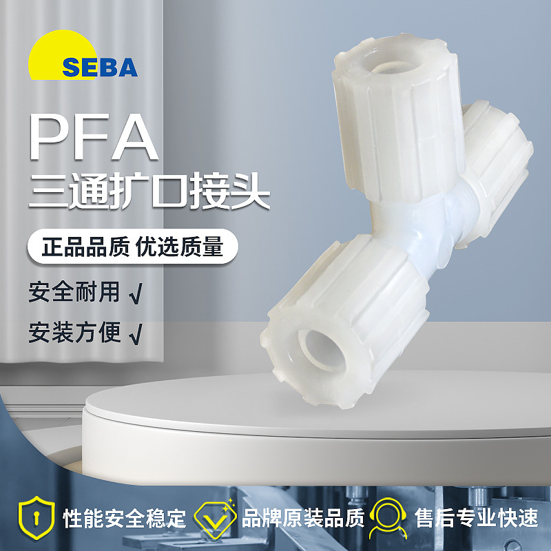 SEBA PFA三通扩口式四氟接头变径大小头1/4 3/8 1/2 3/4 1寸